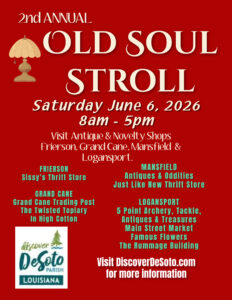 Experience the 2nd annual event in DeSoto Parish. We’ve collected all of our antique, vintage, flea market and oddities into a trail through DeSoto Parish. We have prepared a map available at all locations for an easy trek. Come enjoy the hunt for things that are unique and different. Take time to experience our locally owned restaurants, cafes and coffee shops along the way.